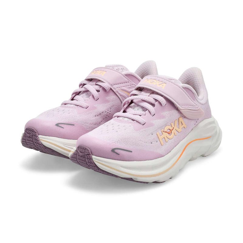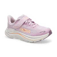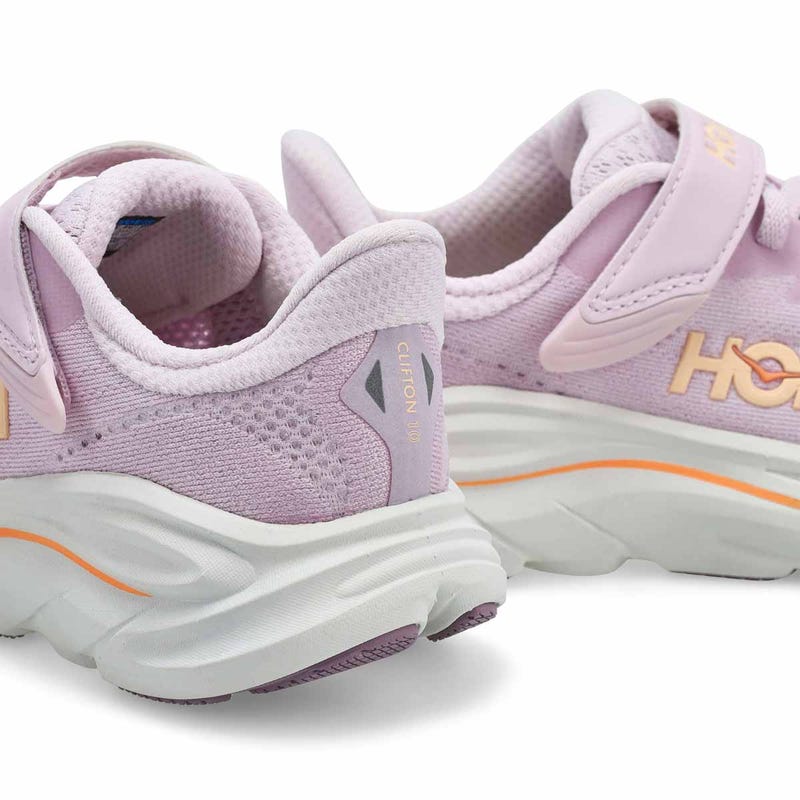 La basket de performance CLIFTON 10 de HOKA, destinée aux jeunes voyageurs, offre le même confort et les mêmes performances de pointe que le modèle adulte, mais dans une taille plus petite. Dotée d'un tissu en maille de performance épousant le pied et d'une sangle de cambrure facilitant l'enfilage, elle comprend également une semelle intermédiaire hyper-confortable, une semelle extérieure en caoutchouc robuste et un embout résistant à l'usure pour suivre le rythme des enfants les plus actifs. Déclinée dans une gamme de teintes qui plairont aux jeunes, la Clifton 10 arbore des touches réfléchissantes pour aider les petits à briller.